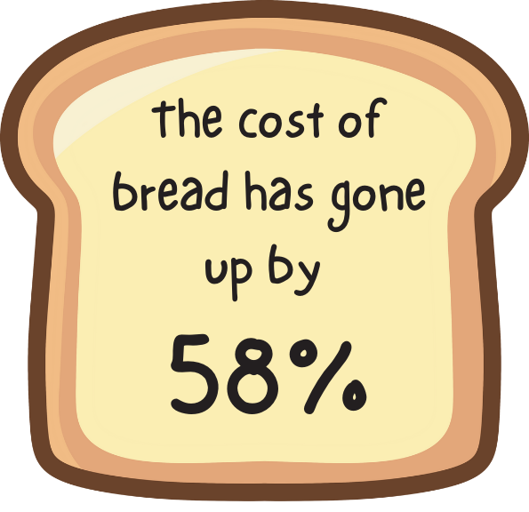 In the year to January 2026, food prices continued to rise sharply. The cost of fruit and vegetables increased by 6%, meat by 9%, a loaf of bread by 58%, and broccoli by 26%.