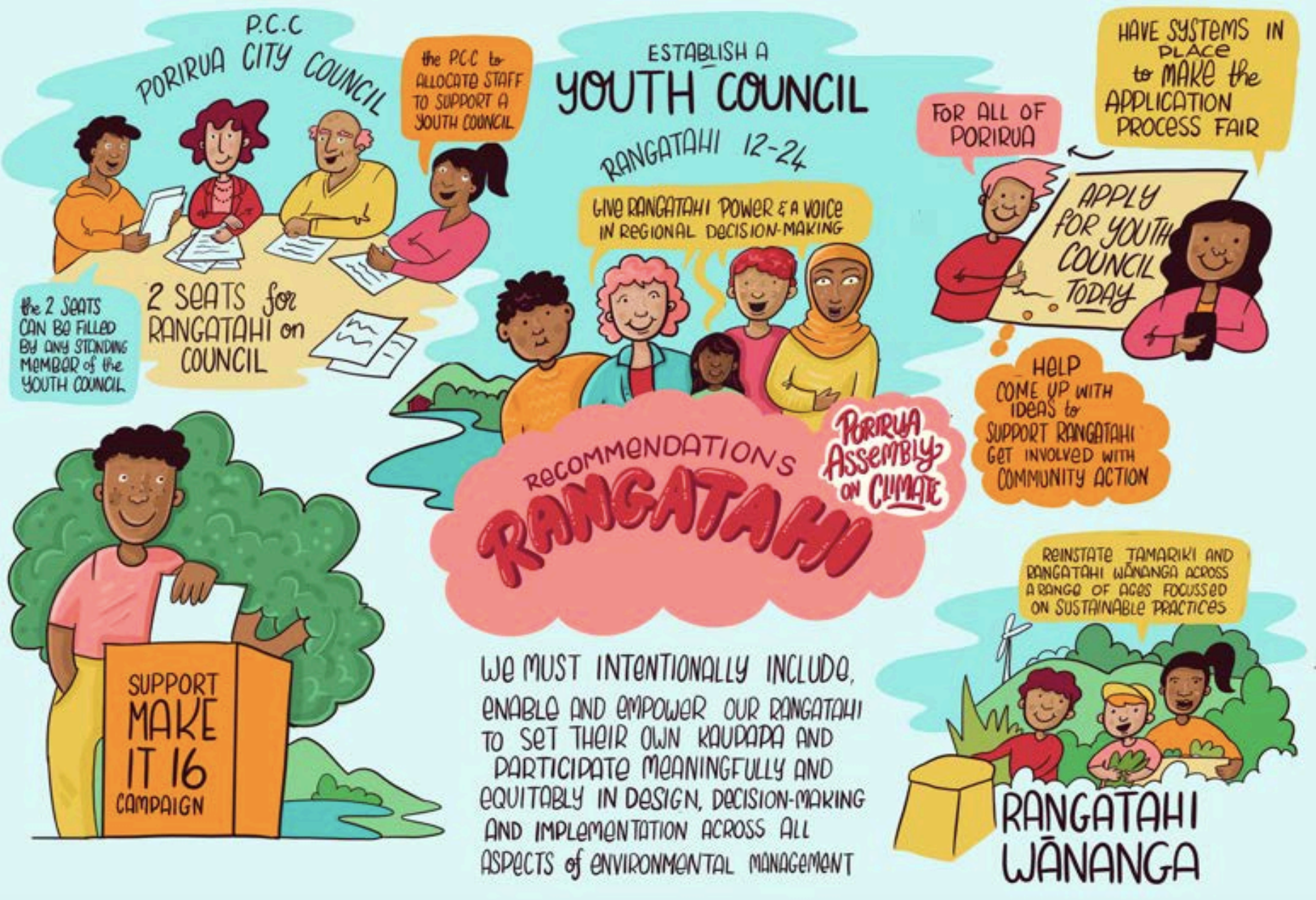a range of ages focused on sustainable practices (e.g. the Mātiti Tamariki wānanga)Support the ‘Make It 16’ youth voting campaign