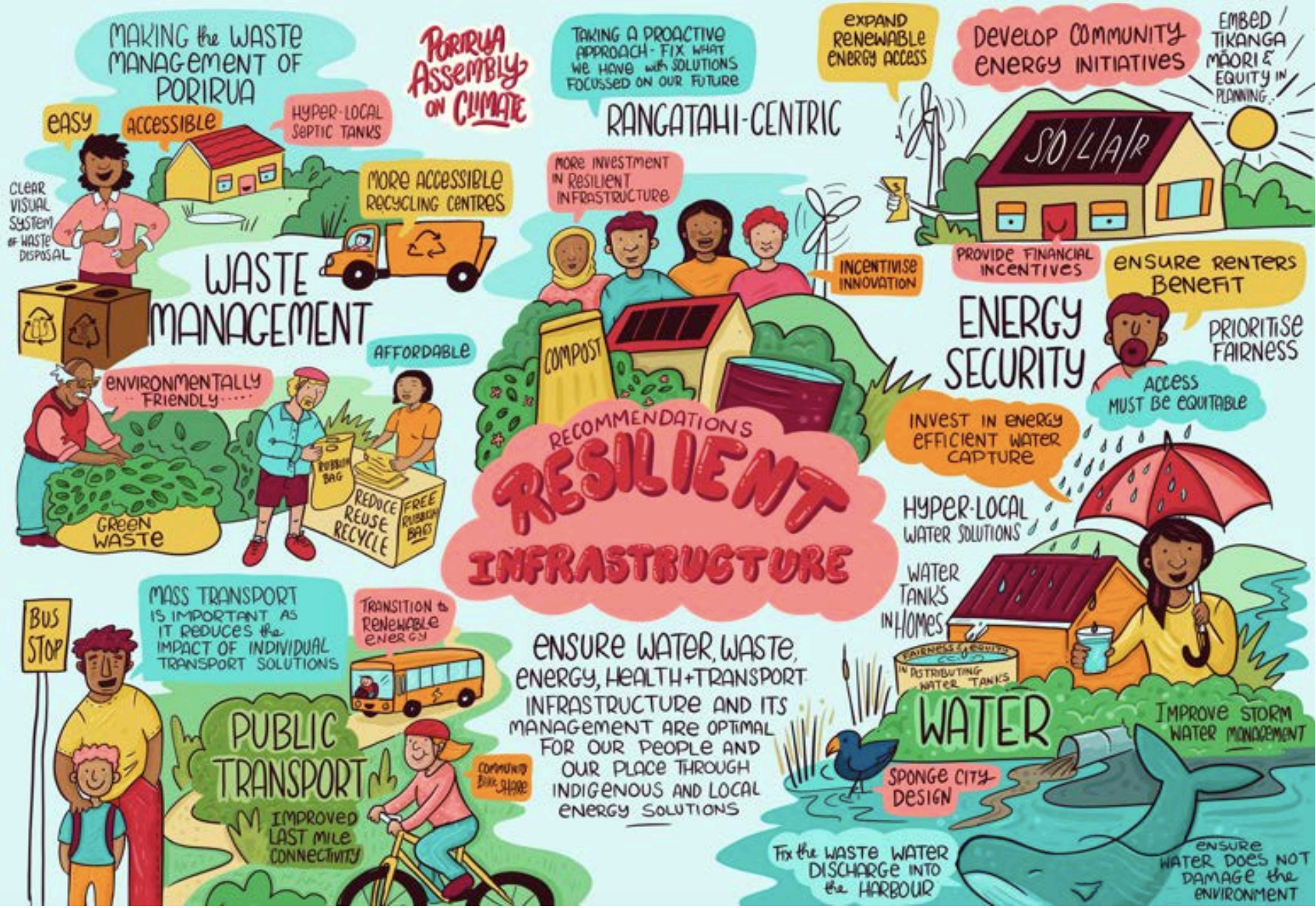 Ensure water, waste, energy, health and transport infrastructure and its management are equitable and optimal for our people and our place through indigenous and local innovation and solutions. Embed tikanga Māori & equity in planning.